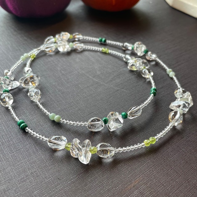 ヒスイ、マラカイト、ペリドット、水晶ネックレス No.03359