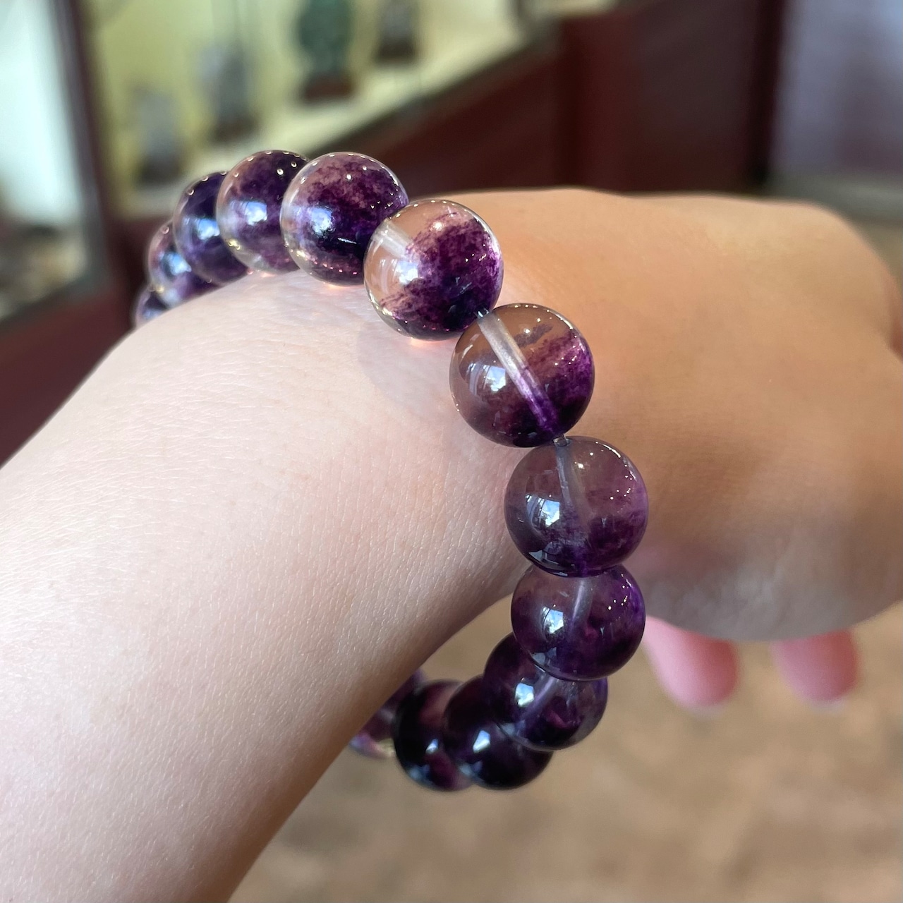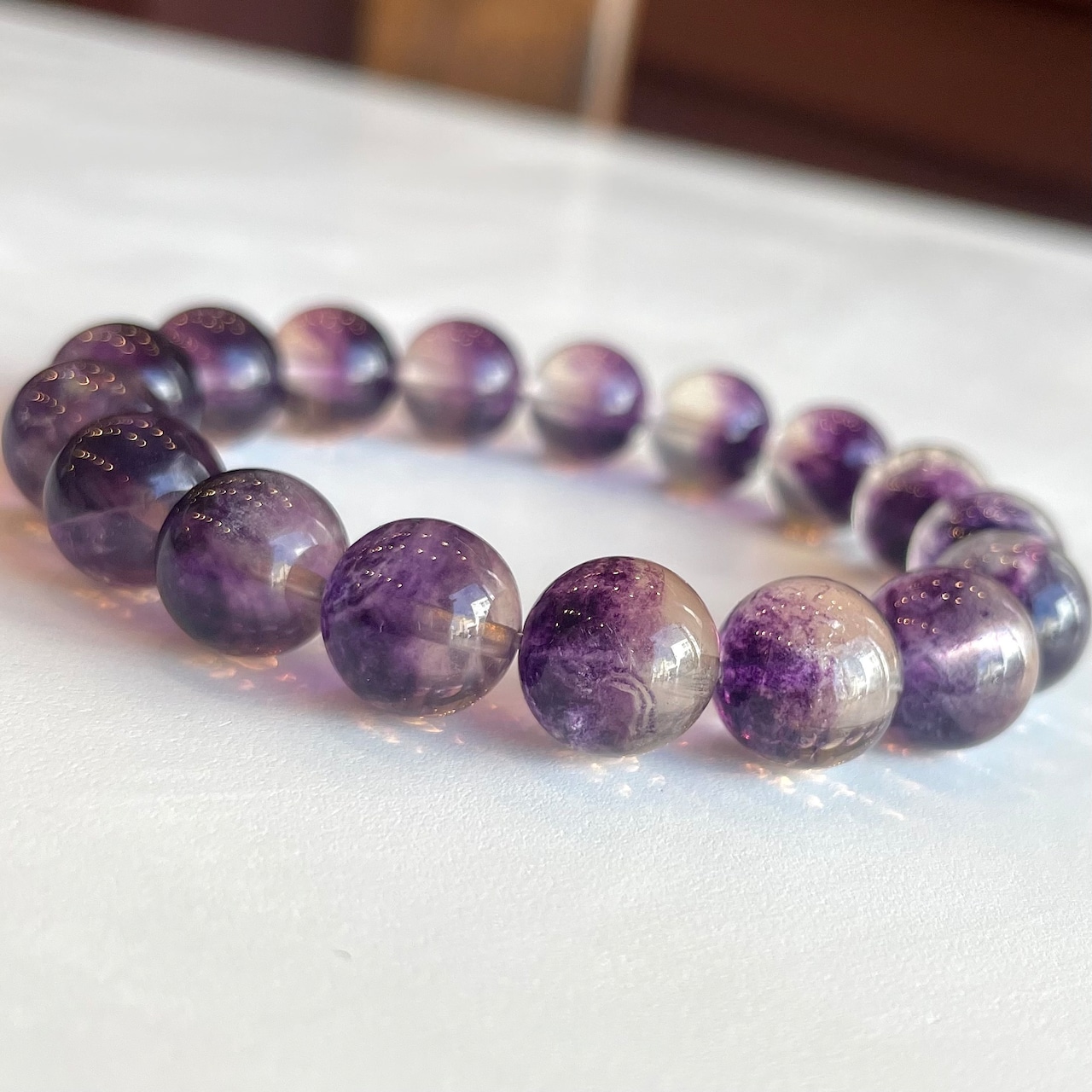 パープルカラーがふわっと入ったフローライト。