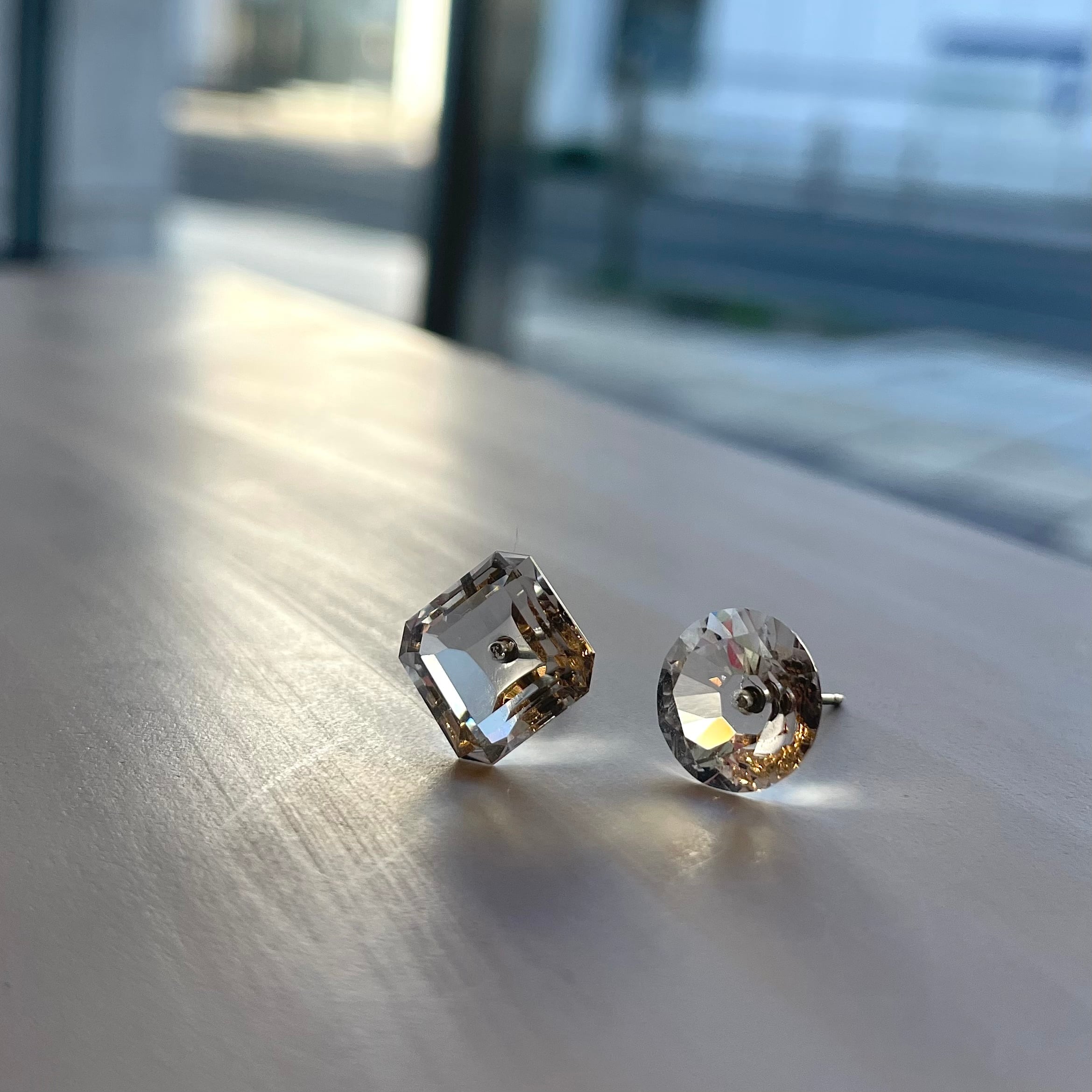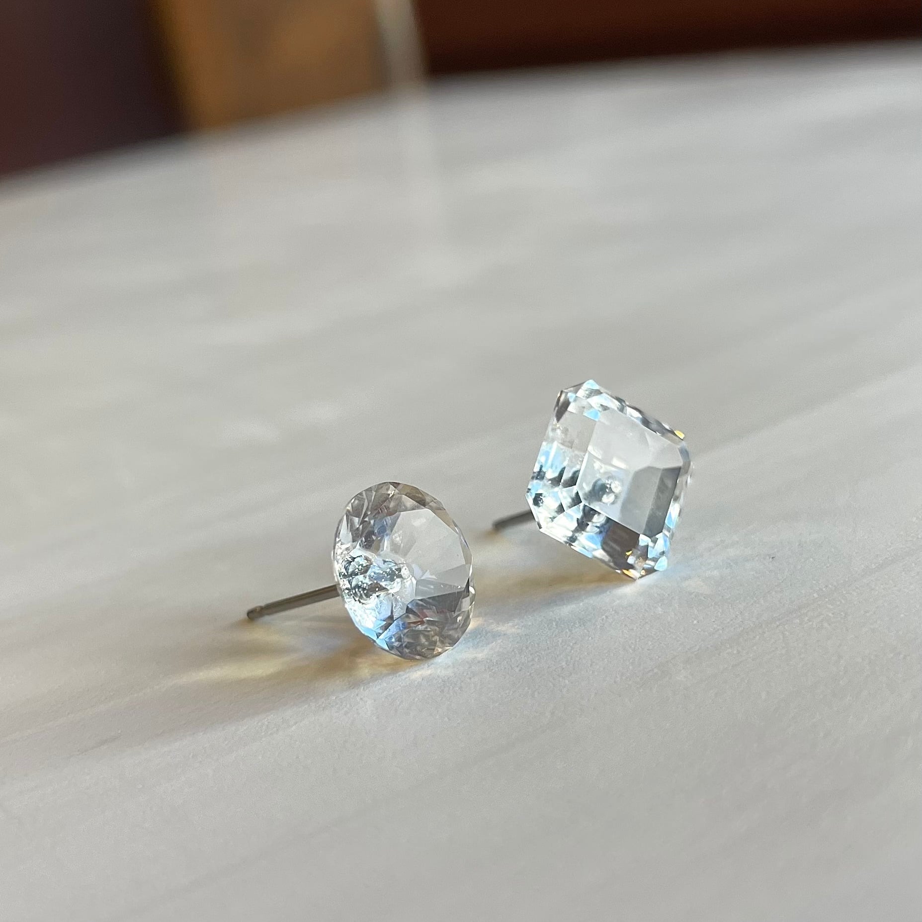 ラウンドカットと、スクエアカットのさりげないアシメピアス。