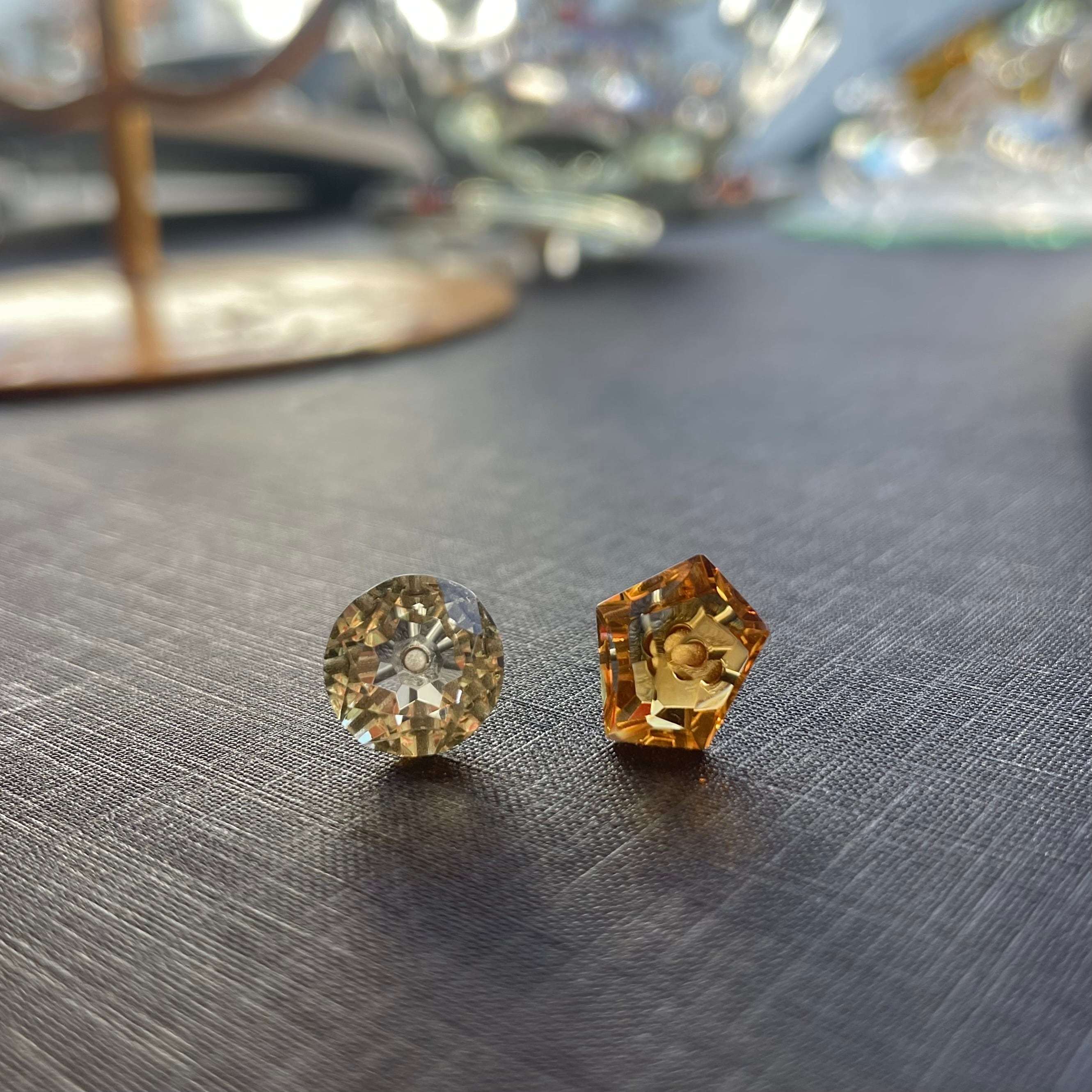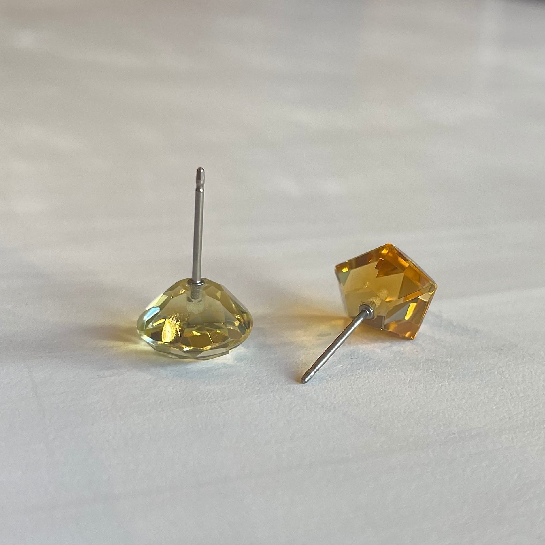アシンメトリーチタンピアス、黄水晶、レモンクォーツ No.33093