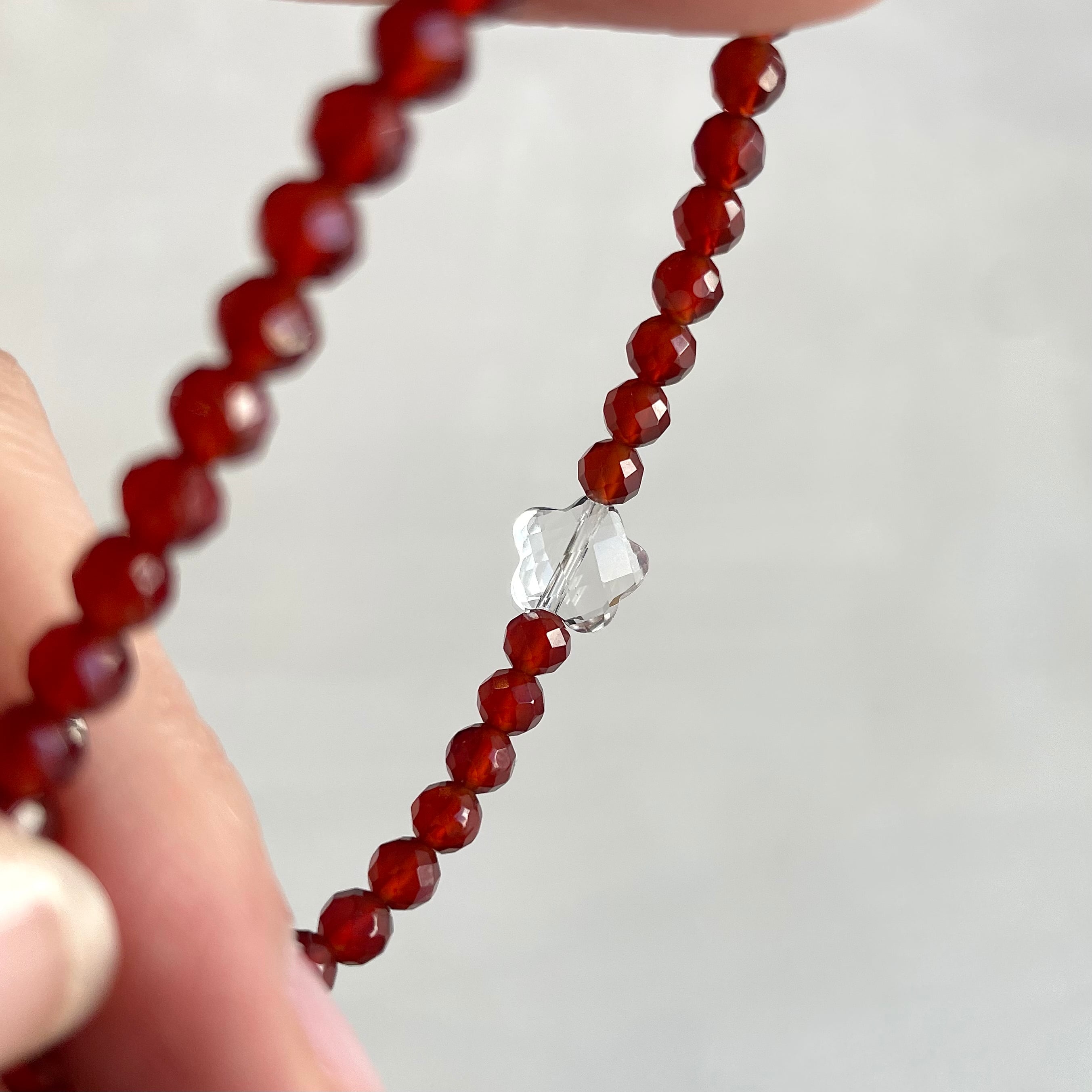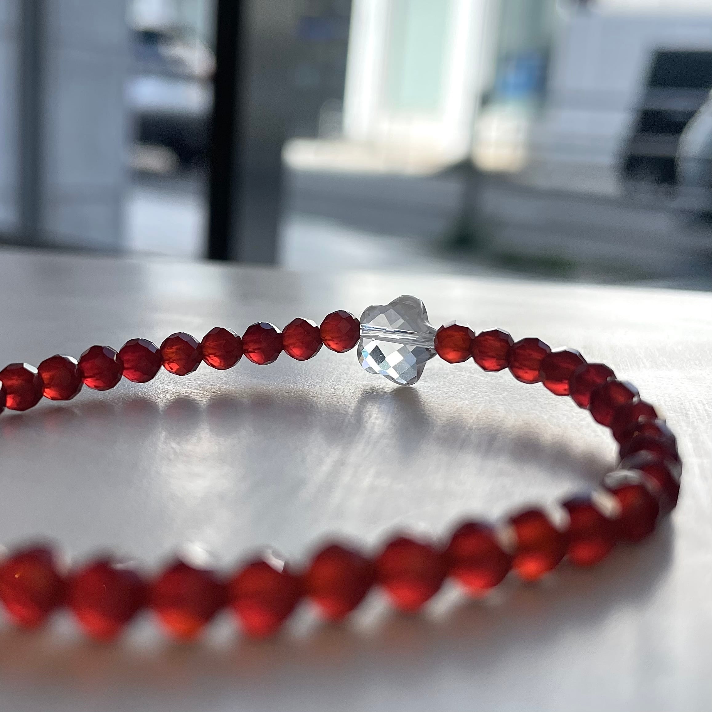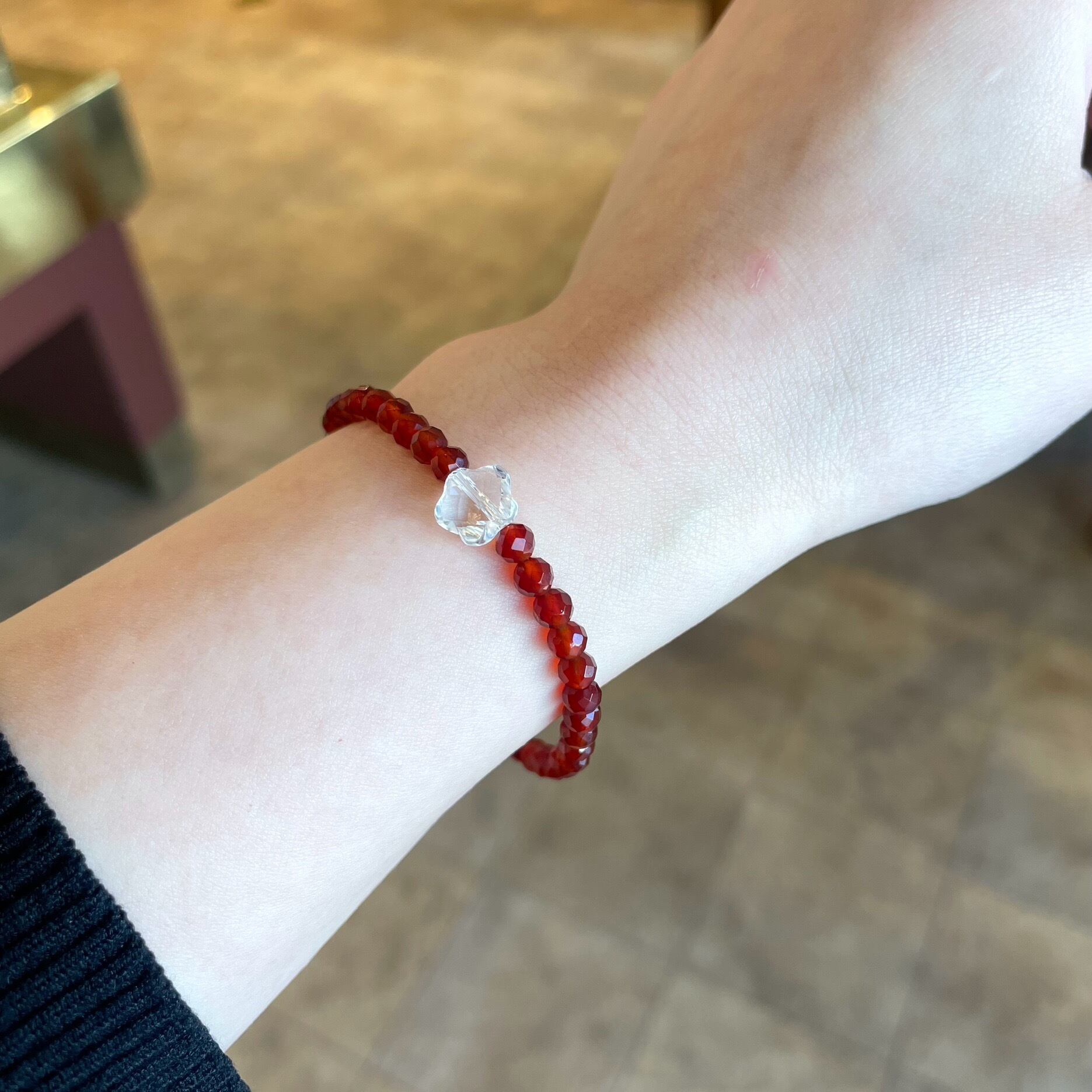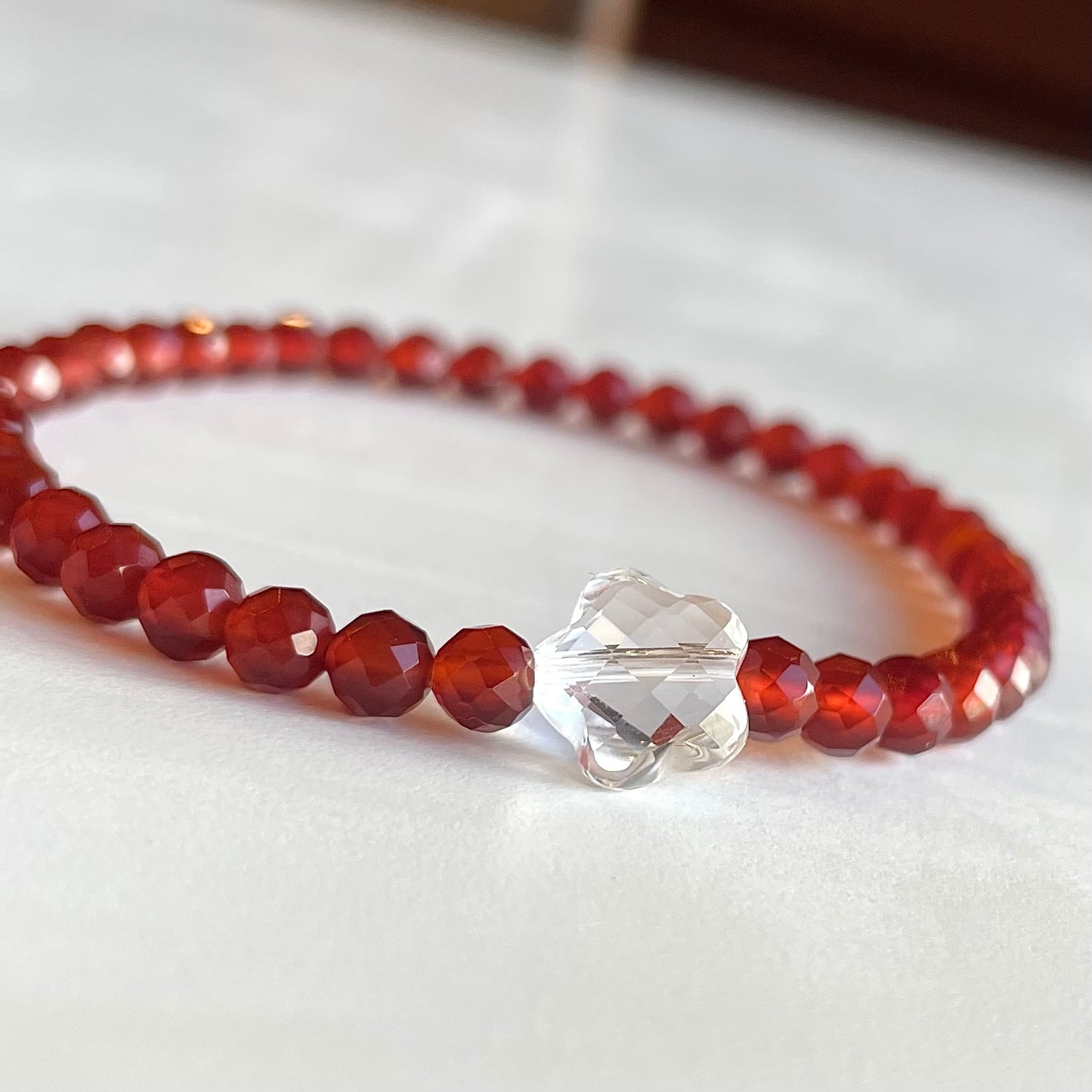 気分があがるオレンジカラーに、水晶のラッキーフラワーをワンポイント。