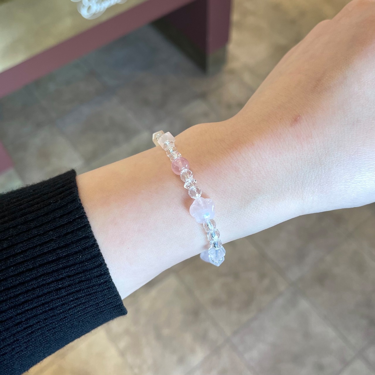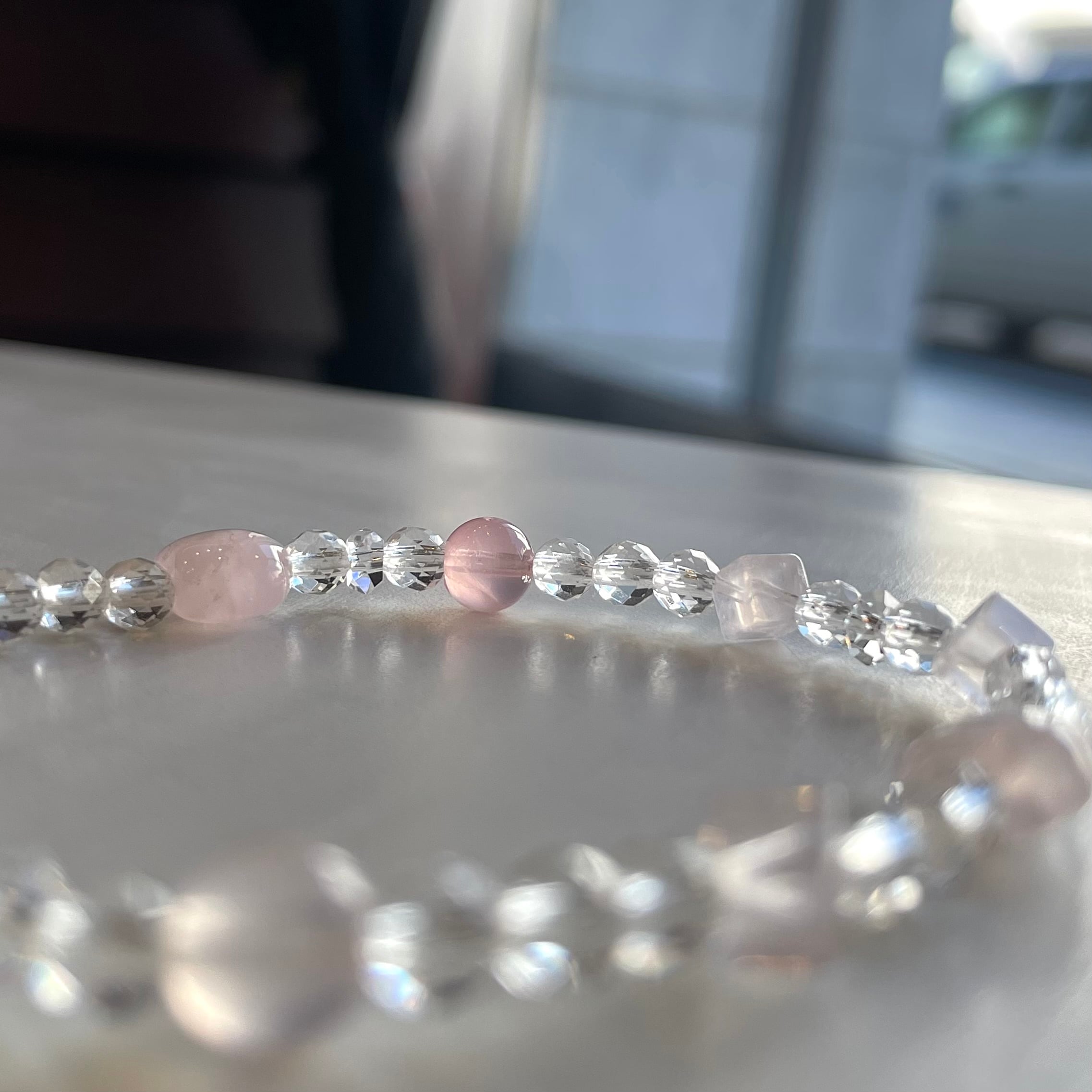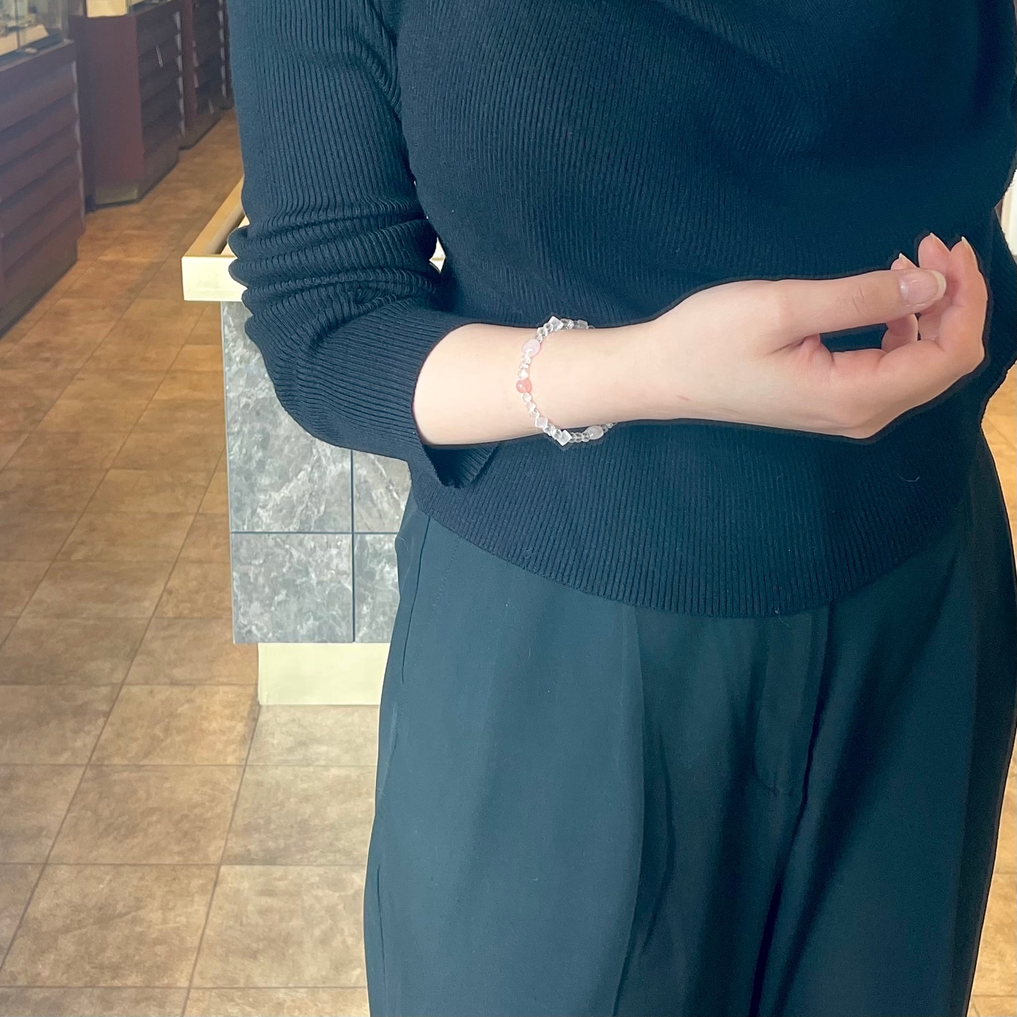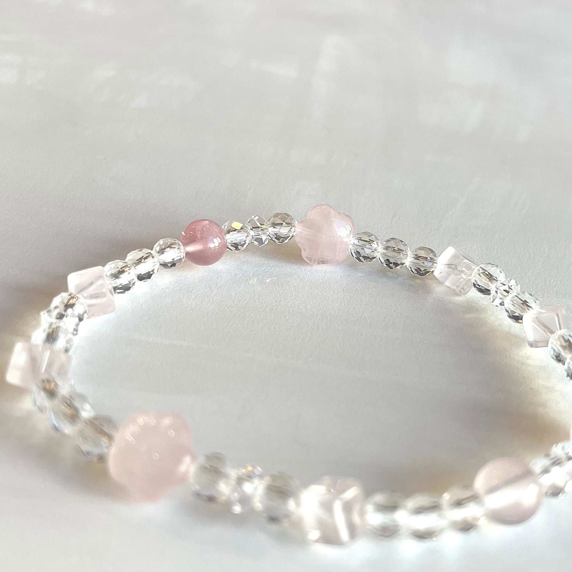 色々なカットの紅水晶を入れて、フェミニンに♩