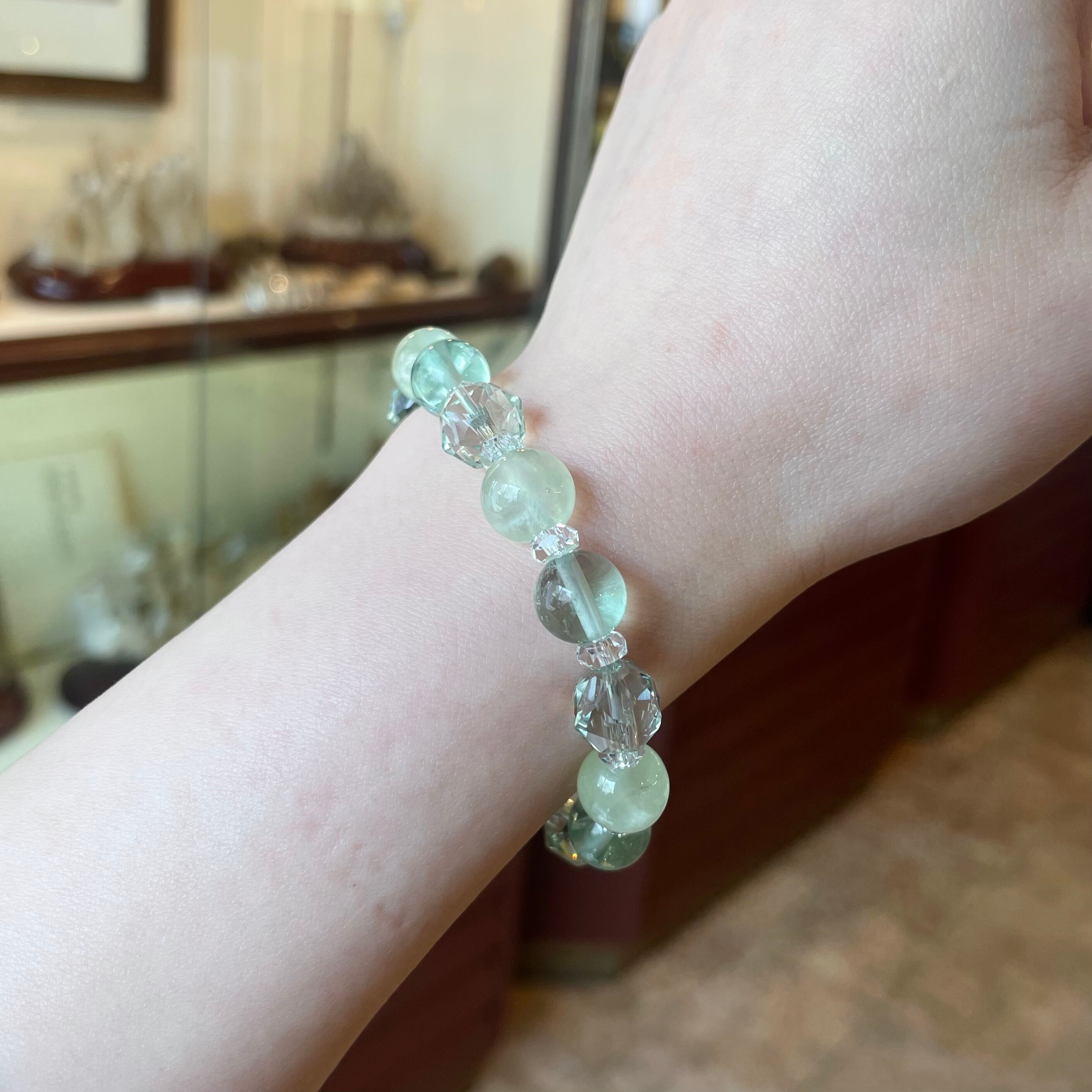 透明〜半透明のグリーンカラーブレスレット。